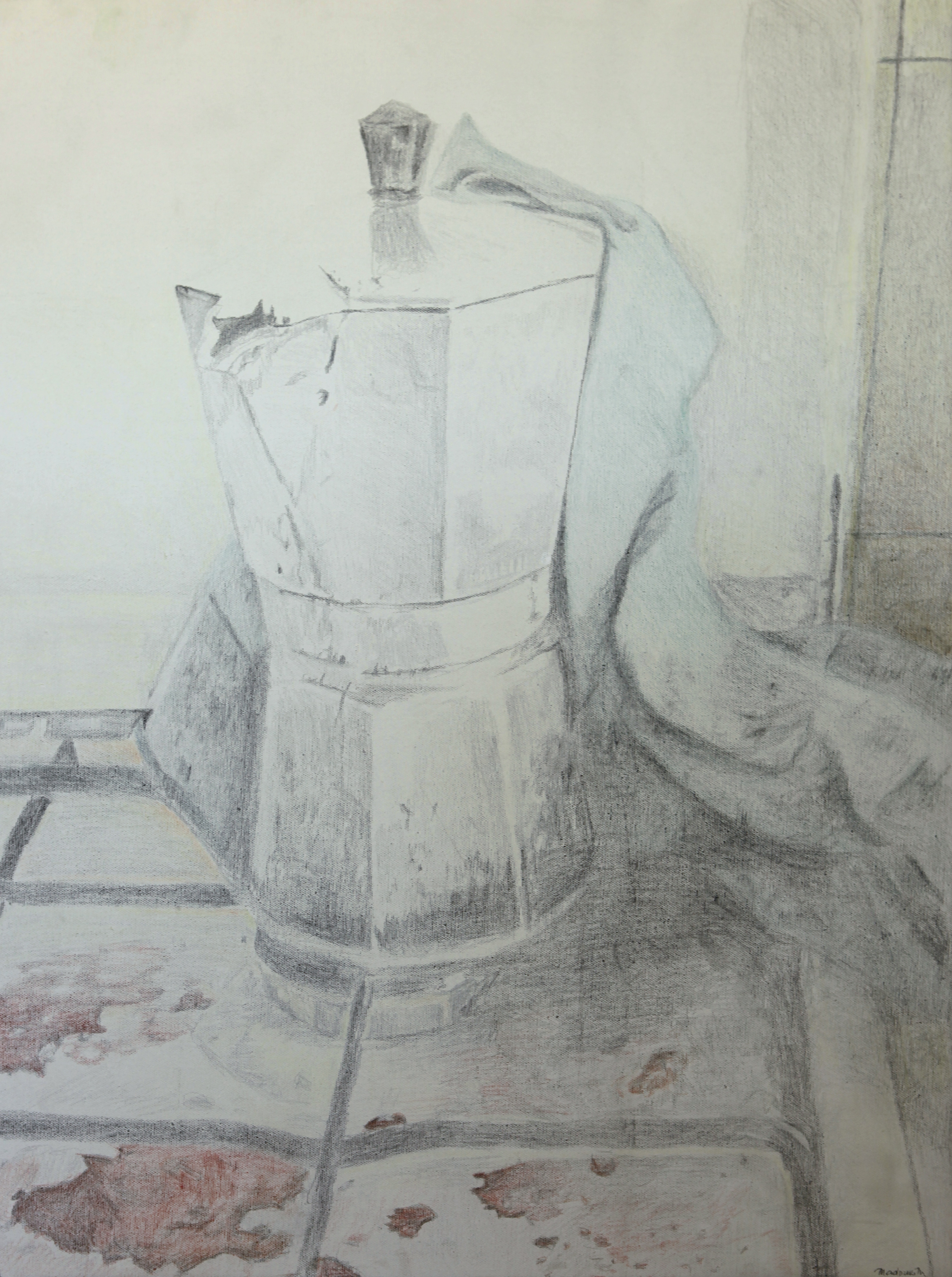 La femme à la cafetière, Crayon sur toile, 60 x 80 cm (2009)