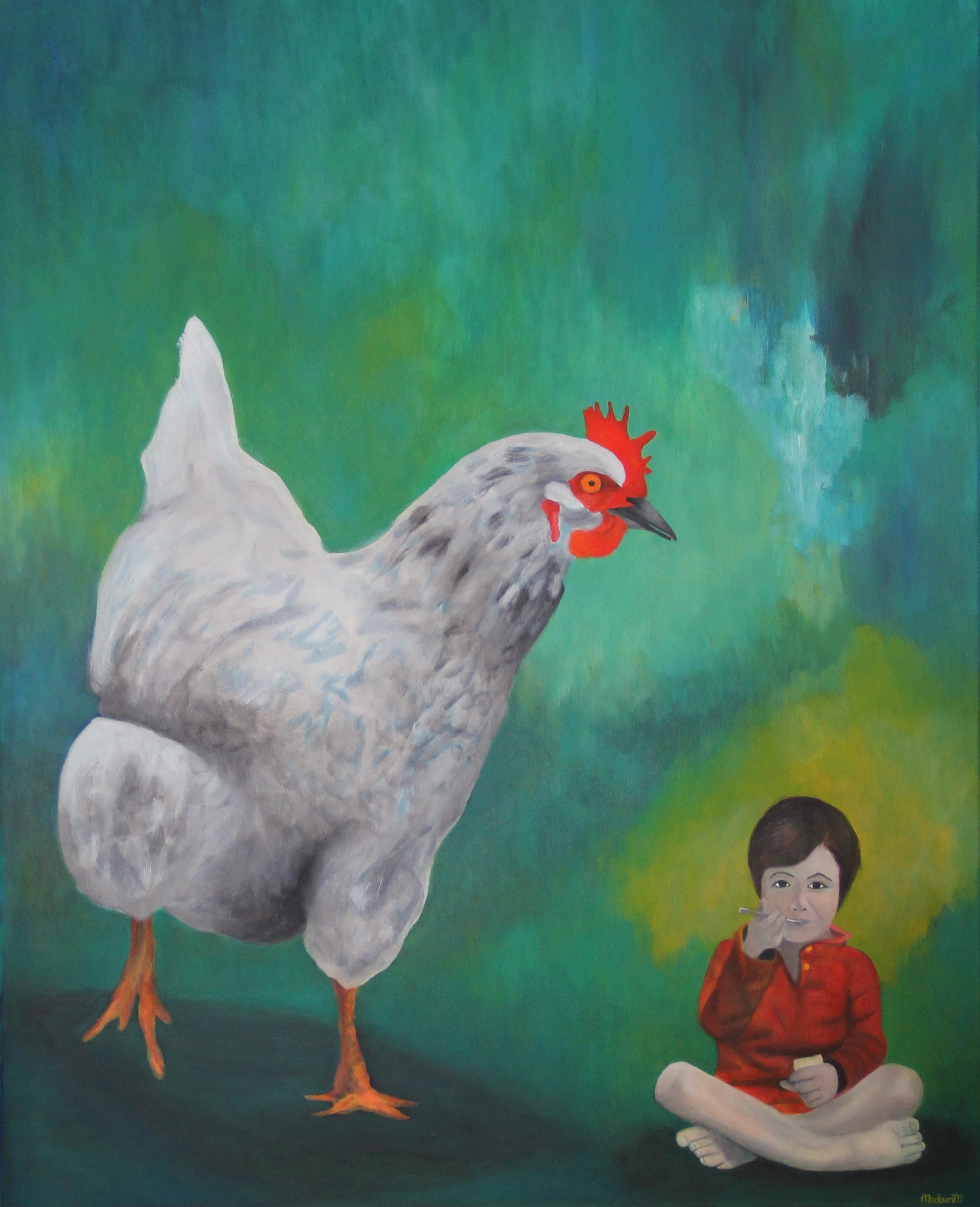 Ma Poule, huile sur bois, 20 x 15 cm (2015)