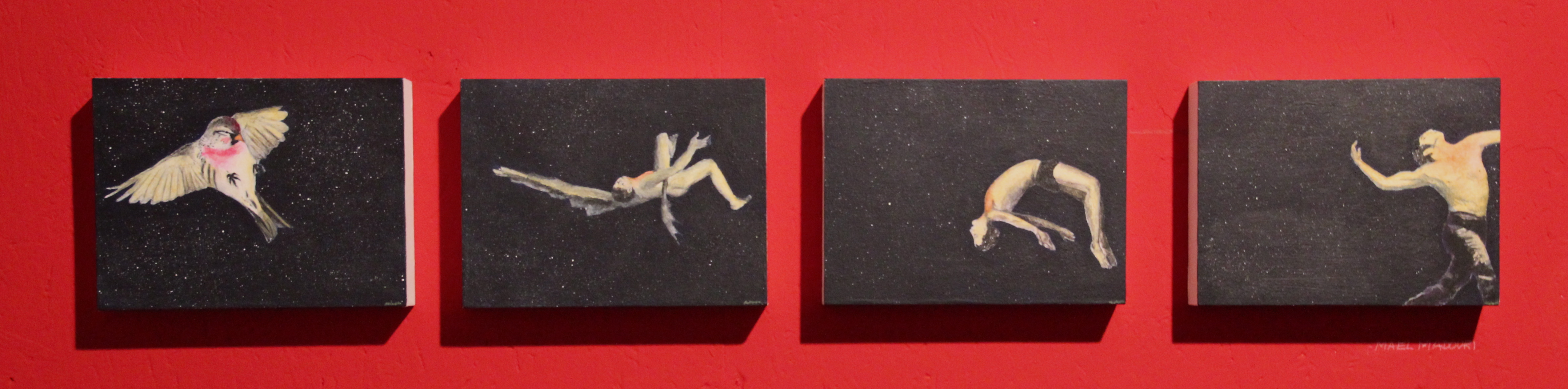 Série L’un monte l’autre descend, huiles sur bois, 20 x 15 cm (2016)
