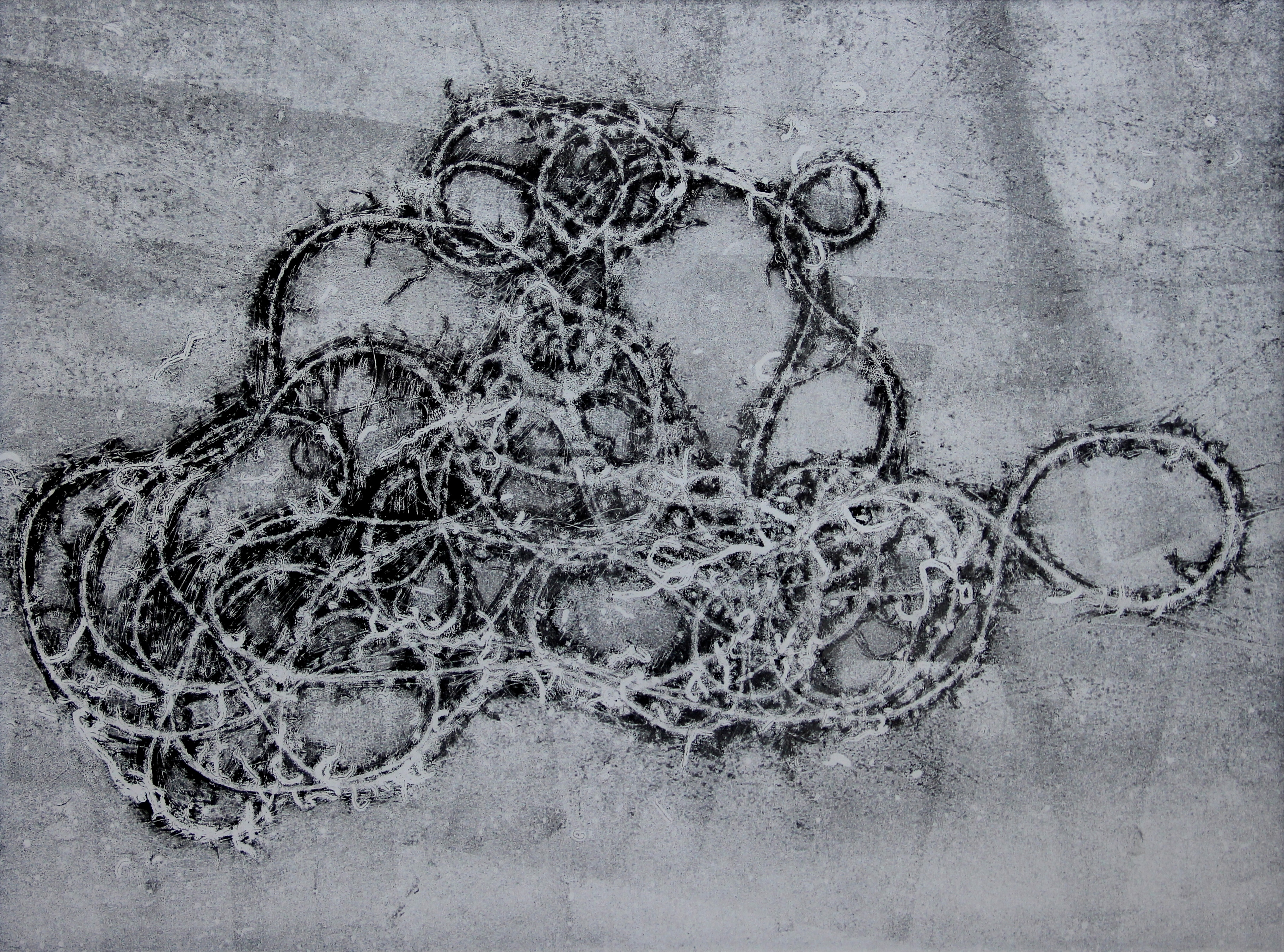 Labyrinthe, monotype sur papier glacé, 30 x 40 cm (2016)