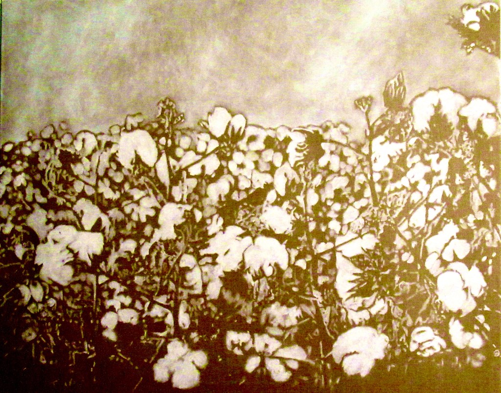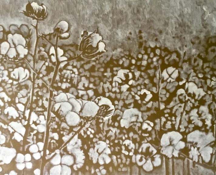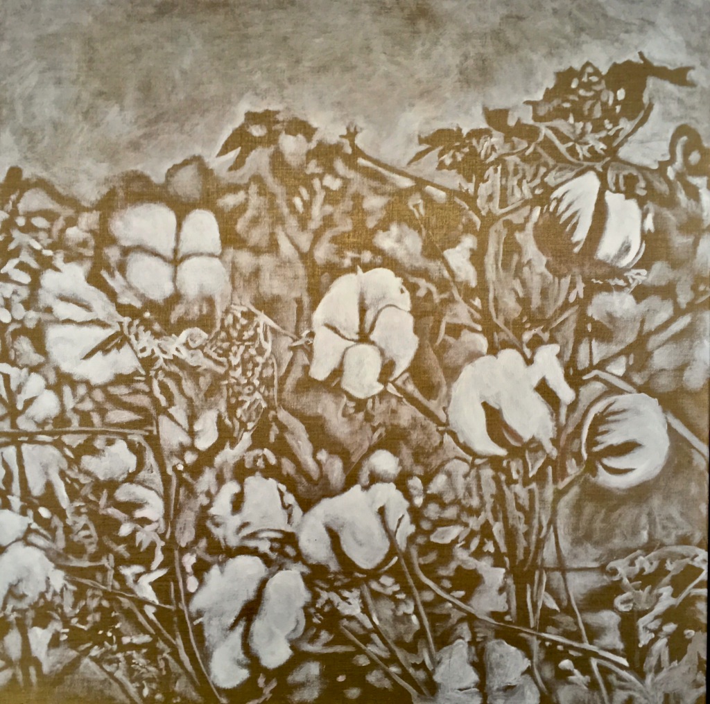 Champ de coton, huile sur bois, 15 x 20 cm (2016)
