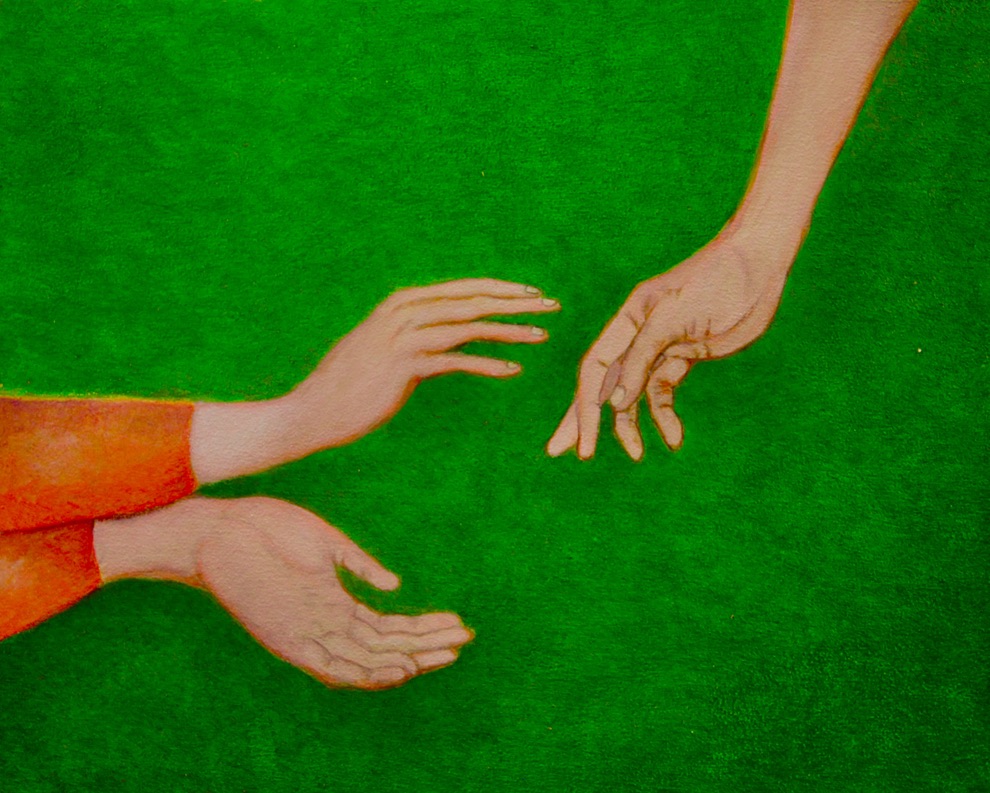 Penser avec les mains, acrylique sur papier, 30 x 20 cm (2006)