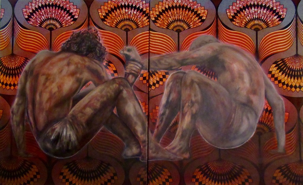 SÉRIE D’HUILES SUR TISSUS WAX MAROUFLÉS 100 X 80, 70 X 50, 50 X 40 CM (2020 – 2021)